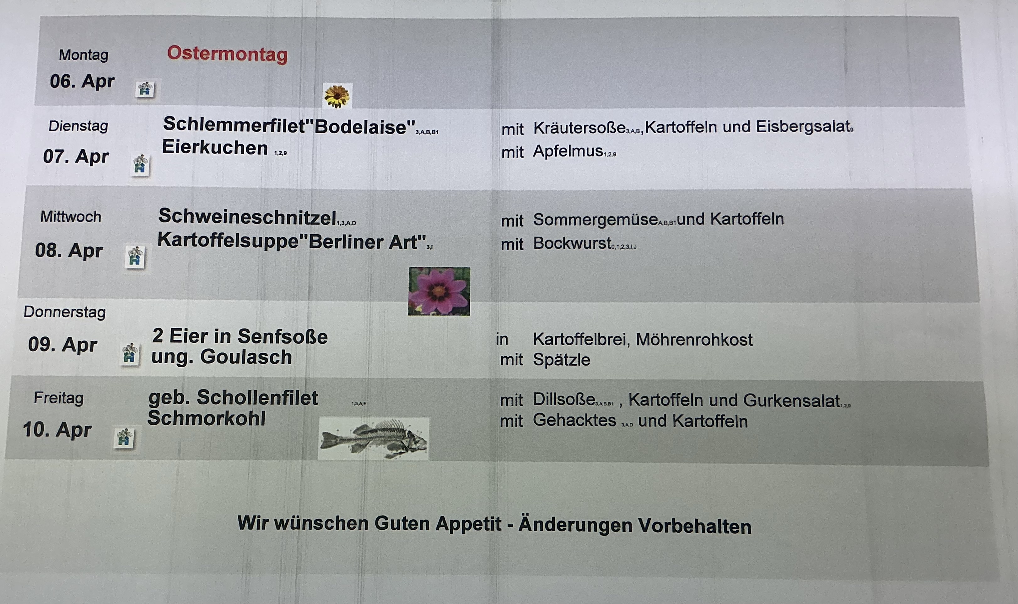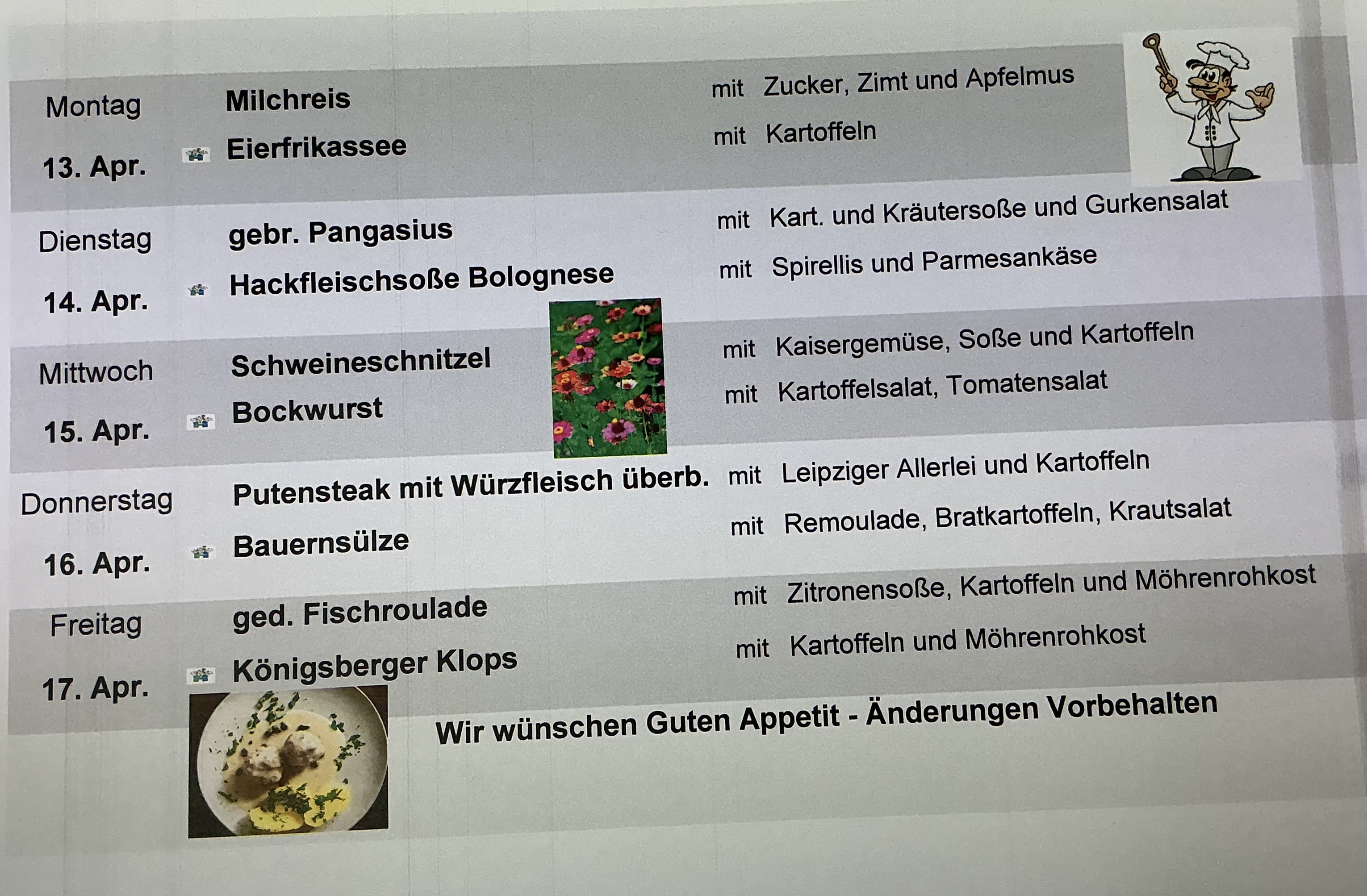 Natürlich sind die Geschmäcker verschieden, aber alles in allem wird gut gekocht hier und mit viel Herz besonders für die Heim Bewohner gesorgt, welche an ihrem Geburtstag mit ihrem Liebling Gericht verwöhnt werden, zur Krönung meist ein " Riesen- Eisbecher", also liebes Küchenteam: Weiter so!!!